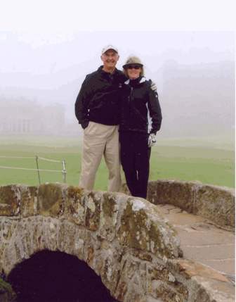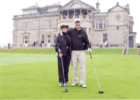 a hole-in-one; he has had a 2 on a 420-yard, par 4 hole, and an eagle on a 525 yard, par 5 hole! The photographs of Professor Howell and his wife, Betsy, were taken on the Old Course at St. Andrews, Scotland. |